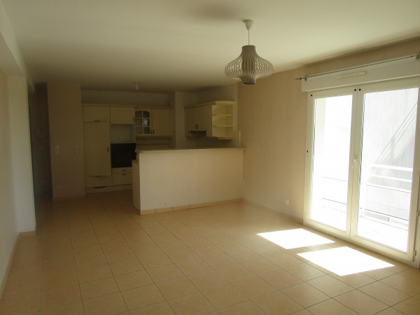 Entrée avec placard, salle de séjour- salon avec cuisine ouverte équipée d'une hotte aspirante, plaque vitrocéramique, un réfrigérateur, un lave vaisselle et un four électrique) et aménagée de placards, deux chambres (chacune avec placard), salle d'eau (cabine de douche d'angle, meuble vasque) et w.c indépendant