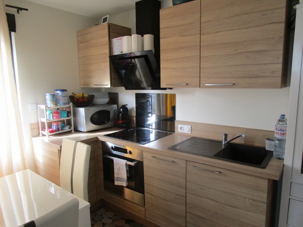 - séjour avec coin cuisine ouvert aménagé de placard et équipé d’un lave-vaisselle, plaque induction, un four, une hotte, salle d’eau avec w.c (douche à l’italienne – meuble vasque) une autre pièce pouvant servir de chambre (6,75 m²)