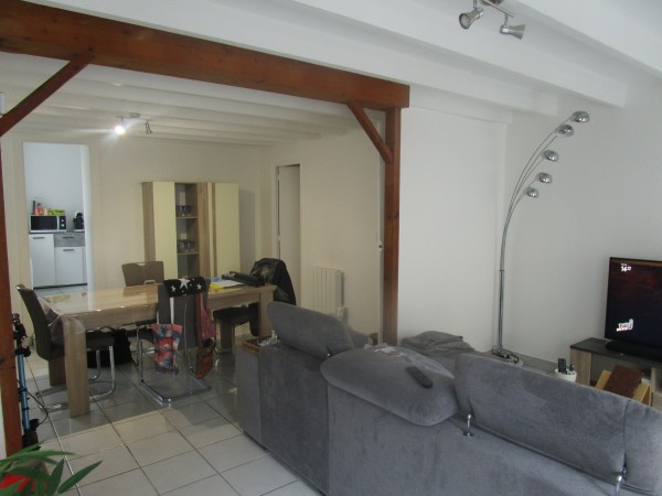 Une maison de ville d’une surface de 80 m², mitoyenne d'un côté comprenant :