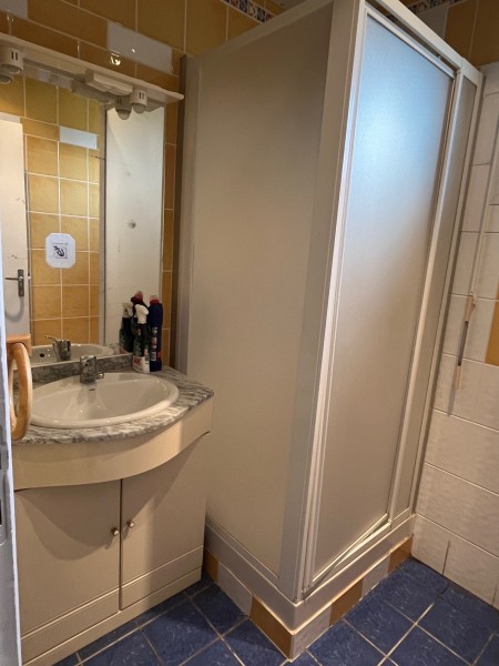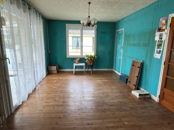 Cuisine aménagée, séjour parqueté 25 m², véranda 9 m², deux chambres 8 m² et 12 m², salle de douches, wc,
